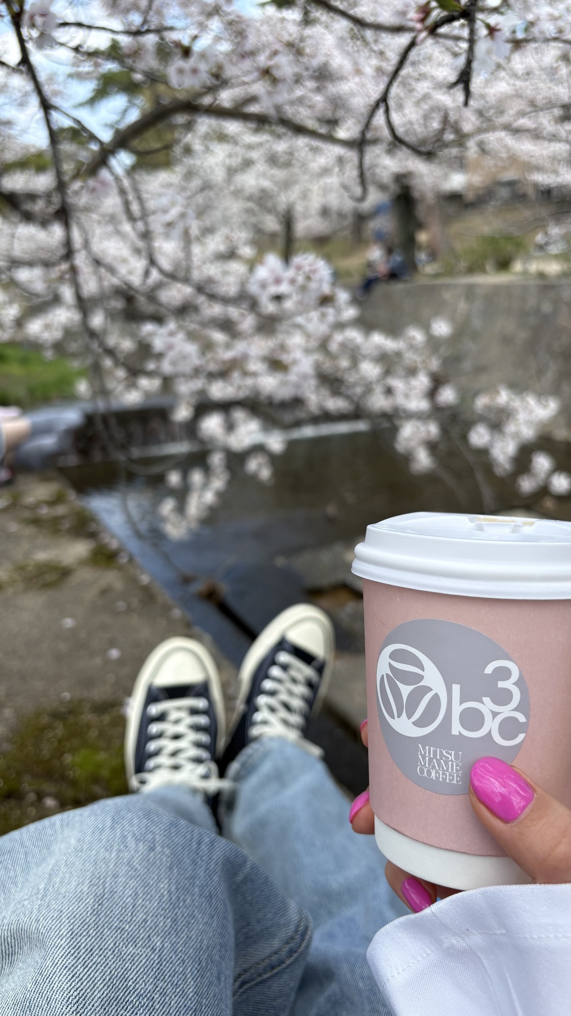 コーヒーを買って、のんびりお花見