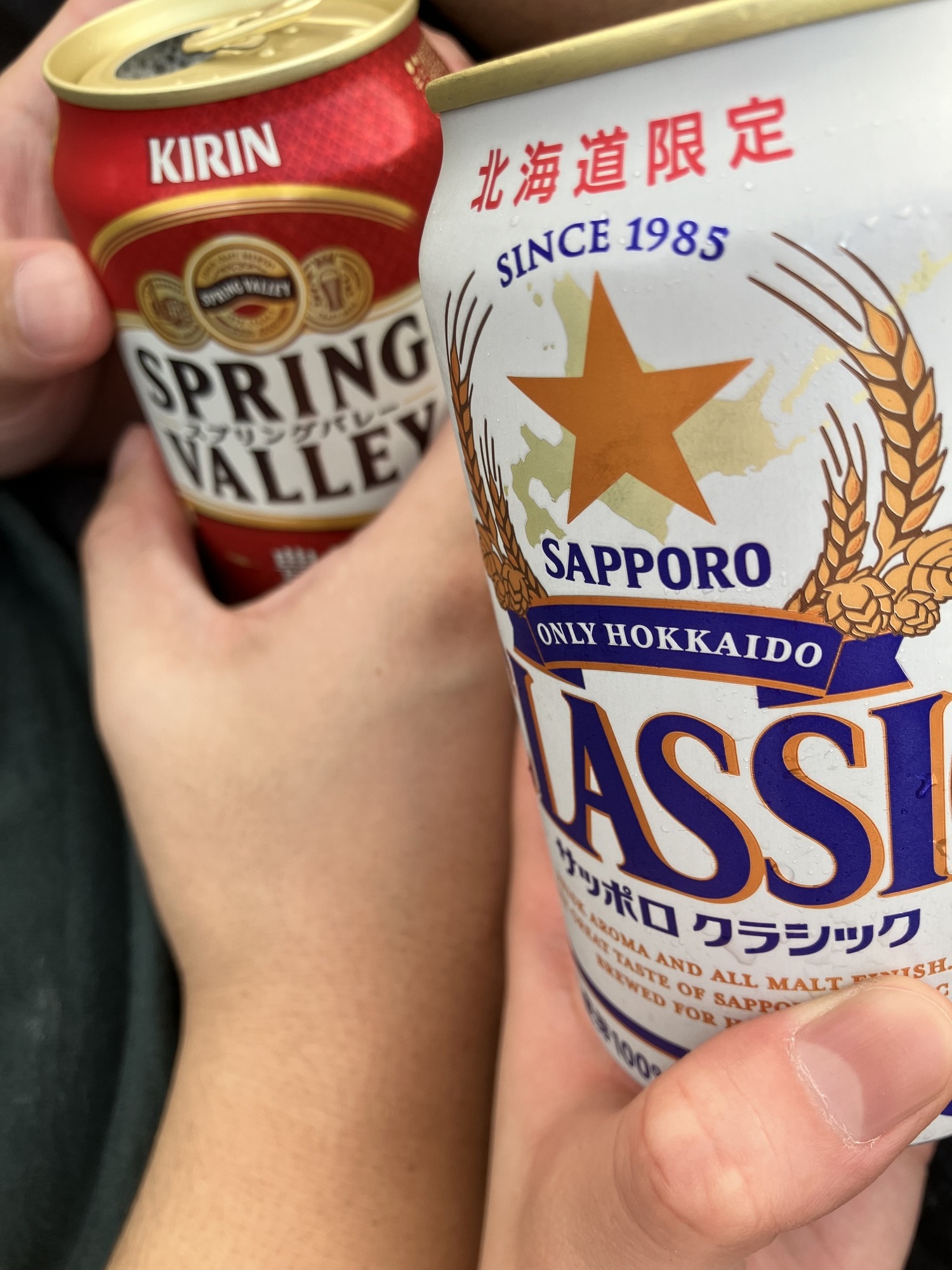 ビールで乾杯笑
