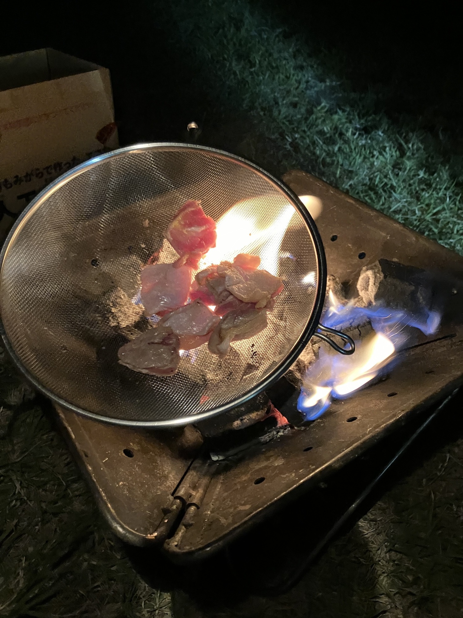 今回もせっせとテントをたてて、火を起こして、、、としている間に我慢できずに