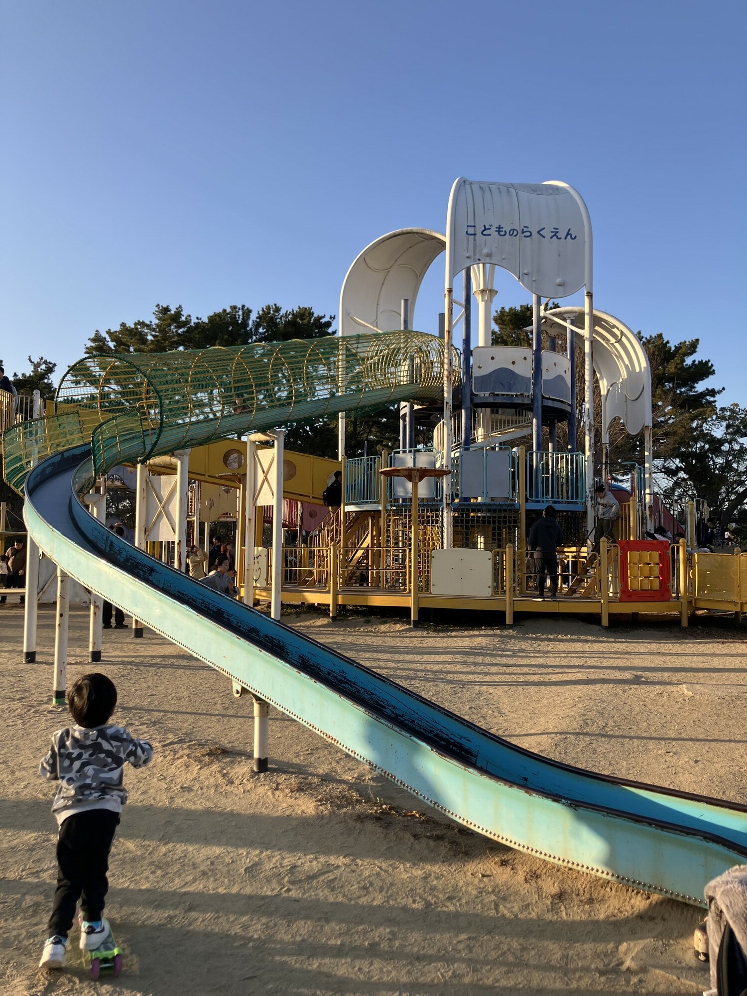 大きな遊具や長い滑り台や人工芝生があったり、ちびっこが遊べれるエリアも別であったり…